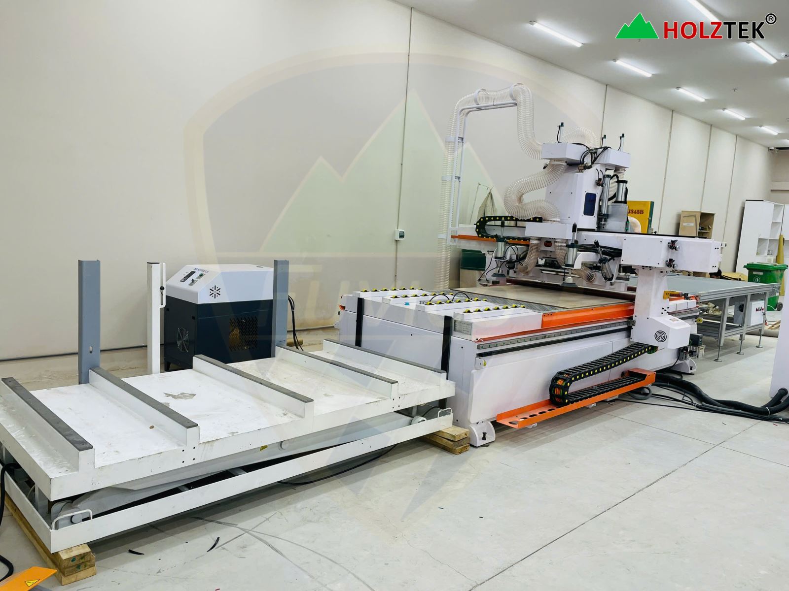 Máy chế biến gỗ Cnc gia công trung tâm đa năng 3 trục & 2 bàn làm việc Holztek - Bàn giao tại Đồng Nai