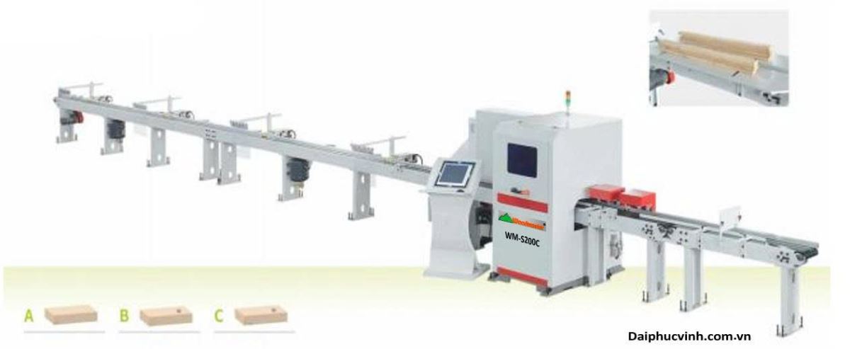 - Hệ thống AI thông qua việc quét trực quan gỗ, mắt gỗ, khuyết tật và gờ, tối ưu hóa việc phân loại và cắt đoạn