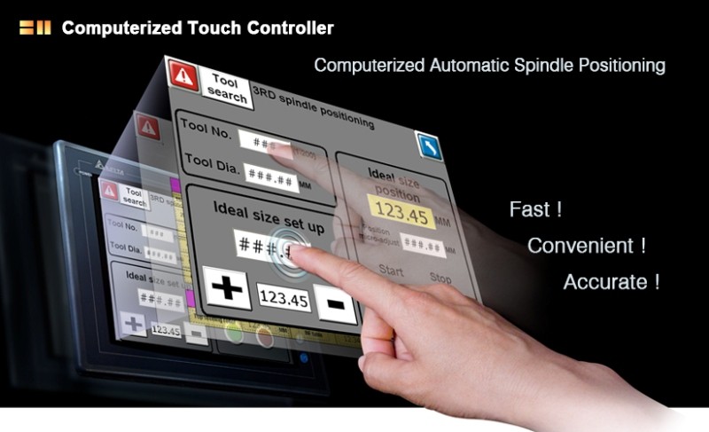 Máy bào 4 mặt với công nghệ cnc lập trình lưu trữ các quy cách dao, các mẫu phôi trên màn hình máy tính của máy. Thay đổi mẫu sản phẩm chỉ cần 1 lần nhấn trên màn hình đem lại sự tiện dụng, chính xác và hiệu quả cao.