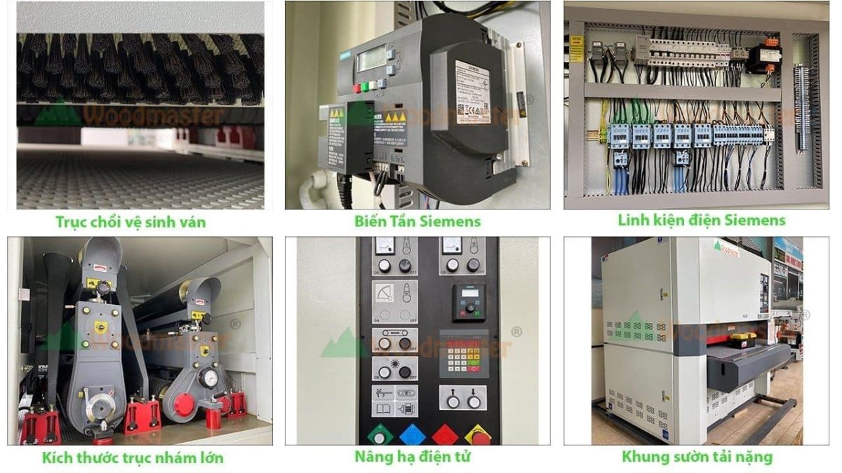 Hãng Woodmaster cho ra mắt sản phẩm máy chà nhám thùng 3 trục khổ 1300mm (1m3) sử dụng 3 trục bào. Đầu tiên phôi sẽ được làm phẳng bề mặt bằng trục dao xoắn với motor 40Hp đường kính trục 180mm, tiếp theo sẽ qua trục chà nhám R2 và cuối cùng là trục chà nhám P với kích thước băng nhám 1330 x 2200mm. Thông qua đó sản phẩm sau khi qua máy nhám thùng 3 trục Woodmaster luôn đẹp và bắt mắt, sản phẩm đang được ưa chuộng tại thị trường Việt Nam được các xưởng sản xuất nội thất tin dùng