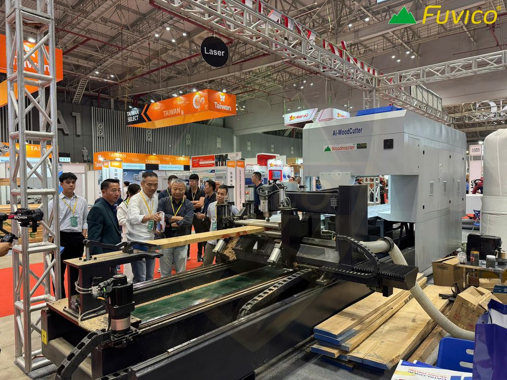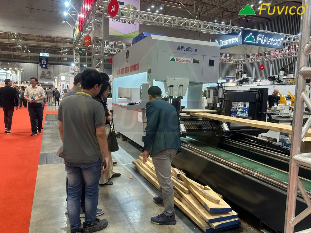 - Máy có hệ thống camera scan định vị kích thước và khuyết tật trên gỗ
