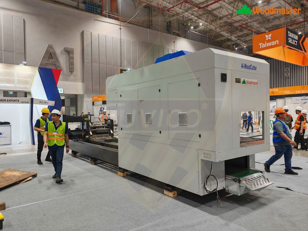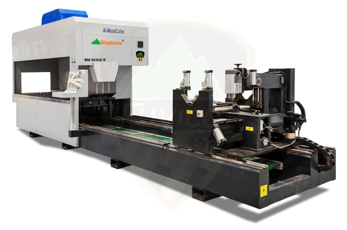 - Máy có hệ thống camera scan định vị kích thước và khuyết tật trên gỗ