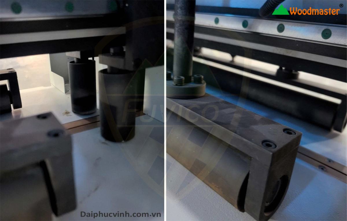 - Hệ thống con lăn ép cạnh tỳ phôi cắt chính xác