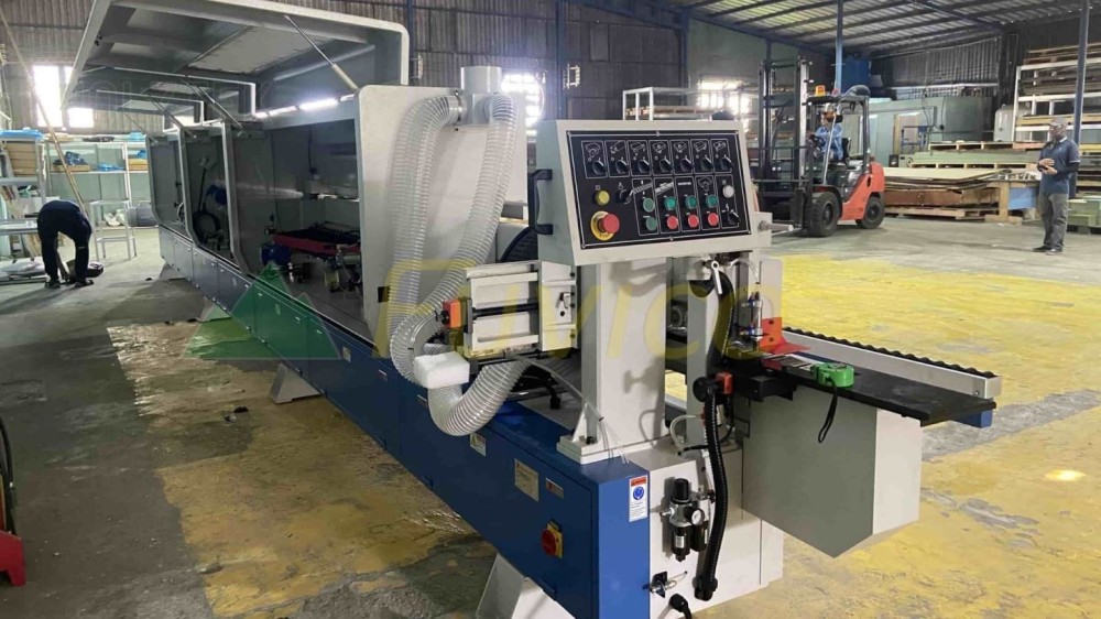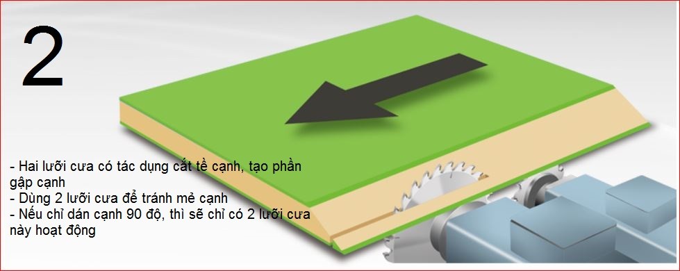 - Máy có hệ thống trục dao phay vát cạnh trước khi dán