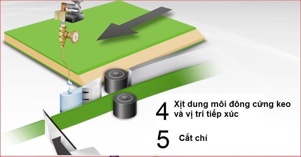 c. MÁY DÁN CẠNH SỬ DỤNG KEO " dạng lỏng, giống keo 502 và một loại dung môi đông cứng "