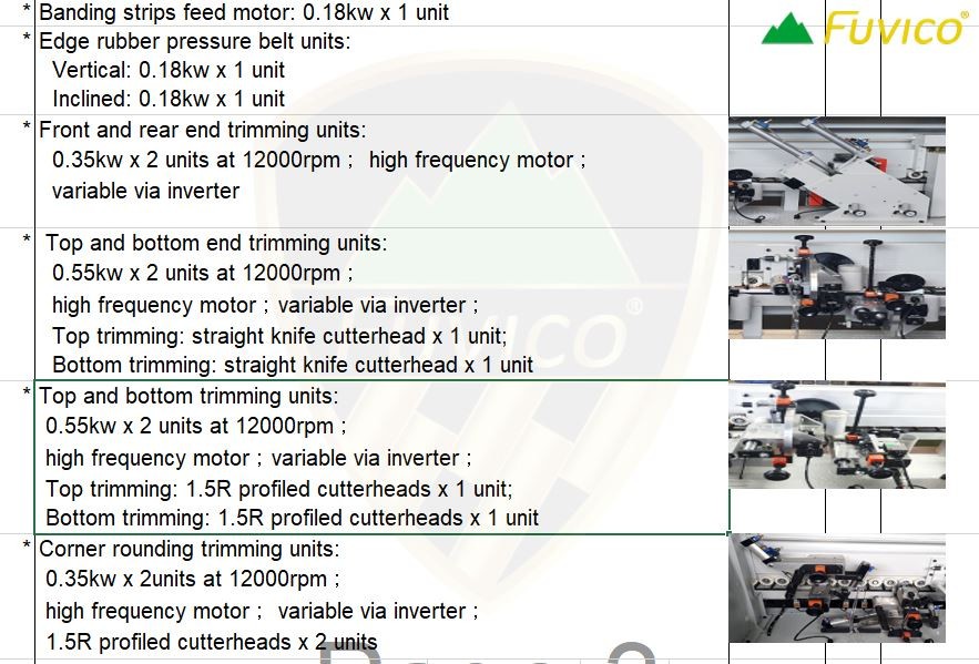 9/ Hệ thống phay bo cạnh R: 0.55kw x 2, sử dụng dao R1.5