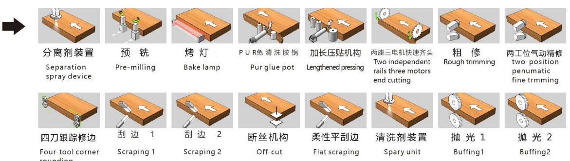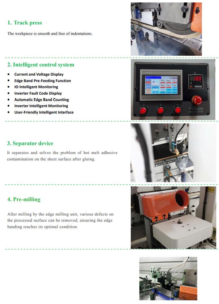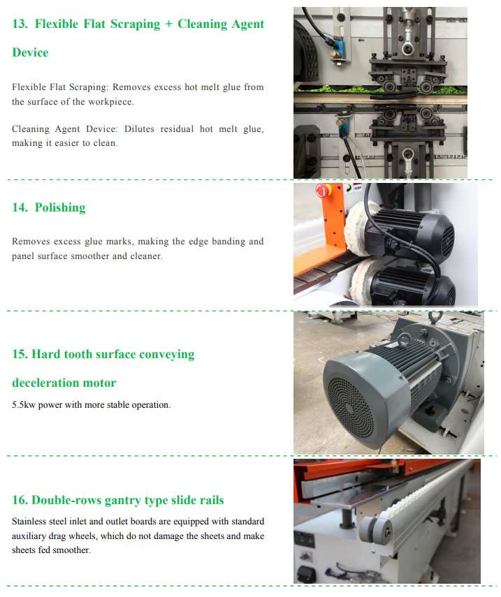 - Hệ thống trục rulo ép cạnh với các con lăn cao su