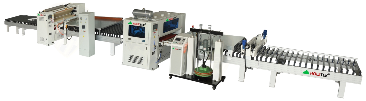 - Hệ thống cụm cắt 2 biên 2 bên, giúp ván sau khi dán bớt công đoạn tề lại mép cạnh và giảm chi phí nhân công, tăng năng suất.