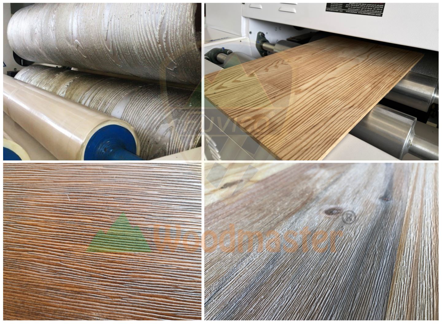 Máy ép tạo ra vân gỗ, tạo sớ gỗ với nhiều định dạng khác nhau, máy có hệ thống gia nhiệt để tại gia vết vân gỗ ấn tượng.