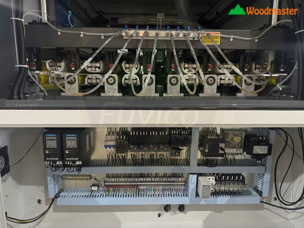 8. Được trang bị hai bộ dao khí trên và dưới để dễ dàng loại bỏ dăm gỗ và bụi khỏi bề mặt ván và các lỗ bên có lỗ sâu, và với cổng hút bụi phía dưới để ngăn ngừa ô nhiễm thứ cấp cho bề mặt ván