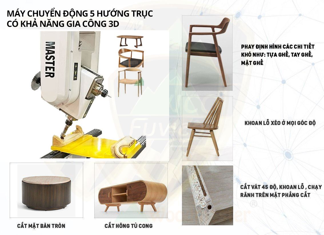 - Máy chuyển động 5 hướng trục có khả năng gia công 3D